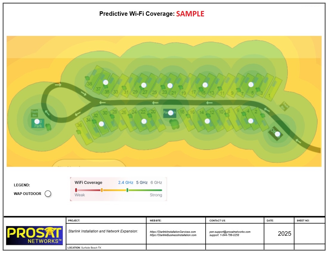 ProSat Networks combines strategic IT network design with detailed WiFi heat mapping to optimize wireless coverage and eliminate dead zones throughout your indoor facilities, outdoor and sub-terraining (mining) operations. Our certified engineers use advanced heatmapping tools to analize signal strength, frequencies, identify interferences and CAD software to design custom wired & wireless solutions for maximum performance.